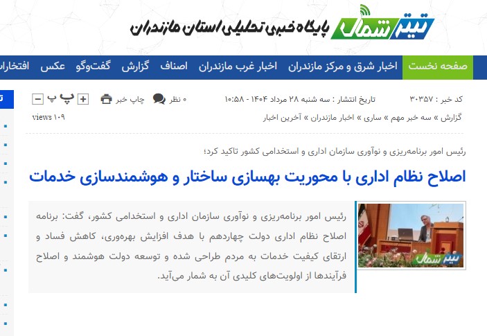 به گزارش پایگاه خبری تیترشمال؛ صبح امروز نشست بررسی «نقش و جایگاه نظام اداری در اداره امور کشور» در سالن جلسات سازمان مدیریت و برنامهریزی مازندران برگزار شد. این نشست تخصصی با عنوان «نقش و جایگاه نظام اداری در اداره امور کشور» با هدف بررسی برنامه اصلاح نظام اداری دولت چهاردهم و با حضور دکتر ذاکری […]
