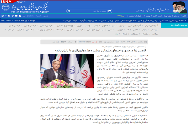 کاهش ۱۵ درصدی واحدهای سازمانی دولتی دچار موازی‌کاری تا پایان برنامه